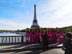 Párizsra is igaz, hogy a város szinte sosem alszik. Különösen nyáron van ez így, amikor hajnalig tartanak a bulik és még napkelte körül is sokan vannak a Szajna-parton. De a legérdekesebb szerintem a kora reggeli órákban végigsétálni, -biciklizni vagy akár -kocogni az Eiffel-torony közeli hidak mentén, mert már ilyenkor is különös figurák keresik a Vashölgy társaságát, akik furcsa szertartásokat végeznek. No ne gondoljunk semmi rosszra, mert csak esküvői vagy alkalmi fotózásról van szó, de persze nem akármilyen kulisszák előtt! A világ legkülönbözőbb tájairól jönnek ide ifjú párok, hogy örök emléket készíttessenek maguknak az esküvői albumba vagy éppen a kandallópárkányra. A semleges szemlélő sokszor kissé bizarr, néha megkapó, de mindenképpen érdekes jeleneteknek lehet tanúja, amint a kora reggeli órák viszonylagos néptelenségét kihasználva profi fotósok kamerái előtt pózolnak a legszebb esküvői díszben pompázó indiai, európai, távol-keleti vagy éppen afrikából érkezett friss házasok, miközben egymással versengve igyekeznek megtalálni a legjobb helyszínt az ideális fényviszonyokhoz és a tökéletes perspektívához.